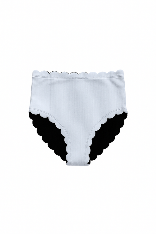 Black & White Scallop High Waist Bikini Bottoms