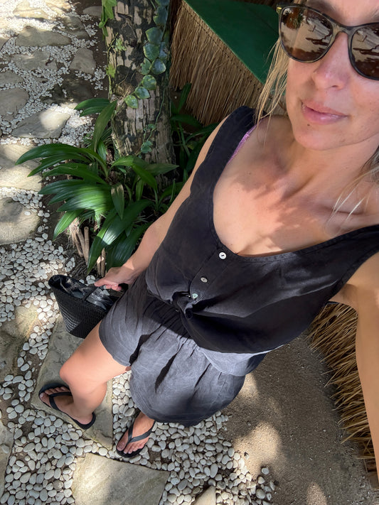 SaleBlack Linen Shorts