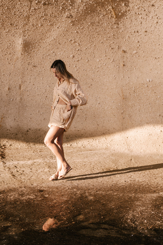 SaleBeige Linen Shorts