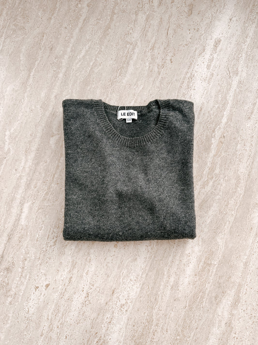 Storm Grey Boyfriend Pure Cashmere Crew Neck Jumper
