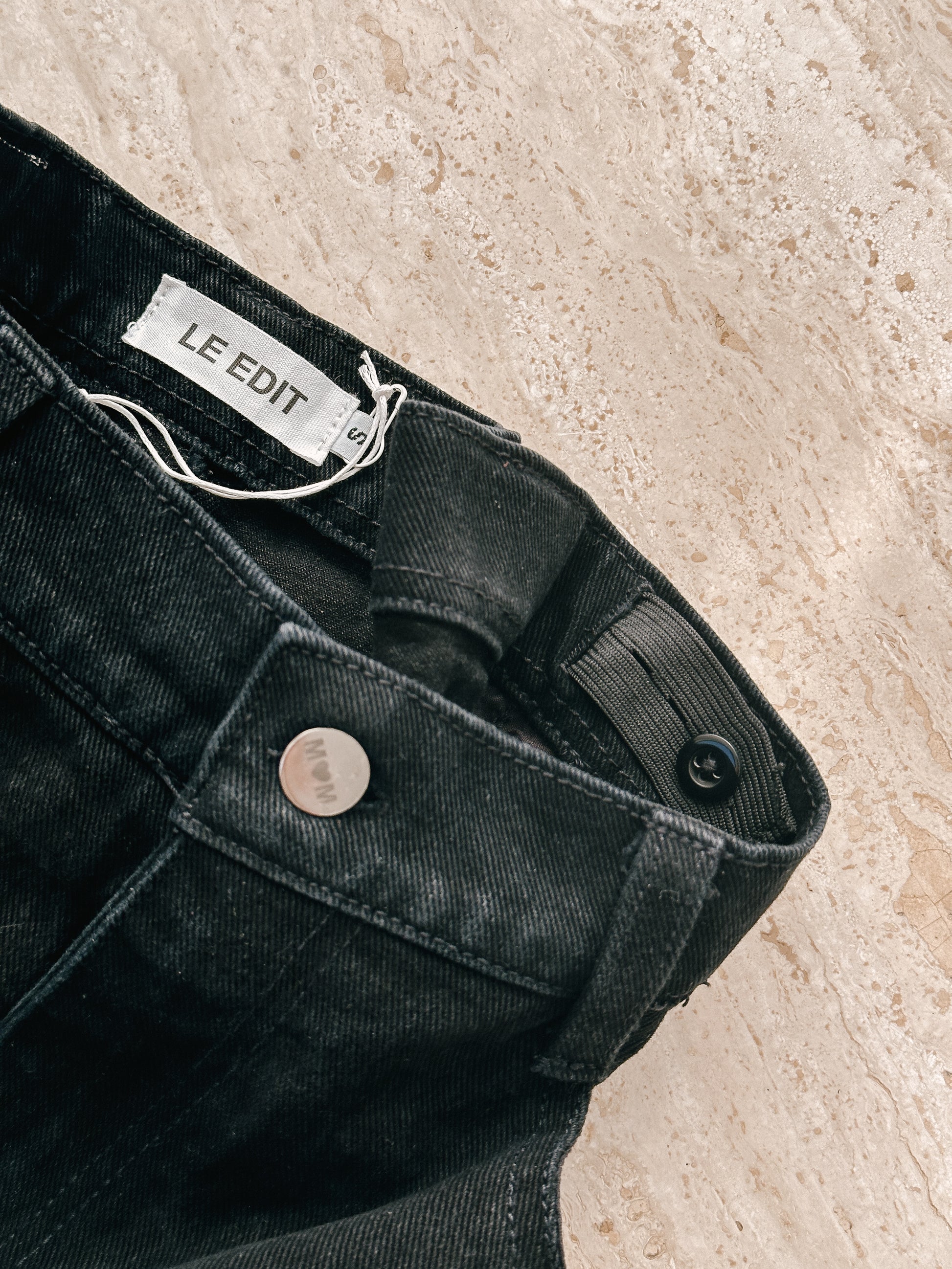 Featuring our signature MOM Button and available in Black and Stonewashed.  Also available as Denim Shorts.